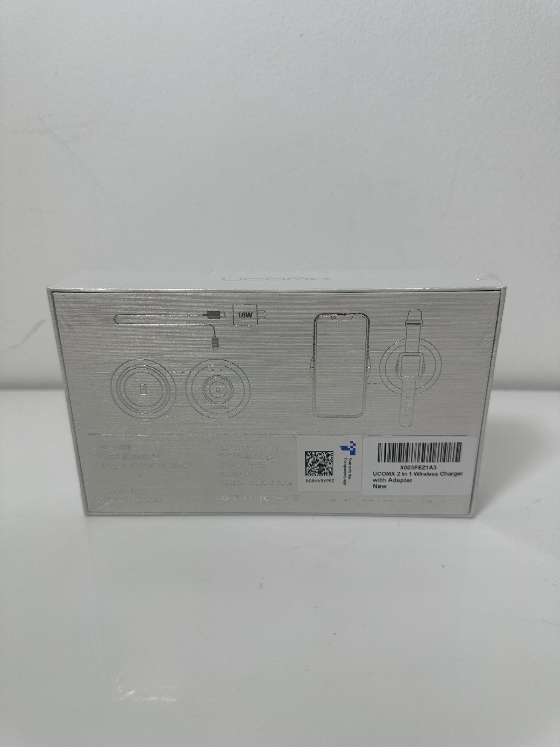 2-in-1 Wireless Charger – White – UCOMX – Novo (na caixa)
