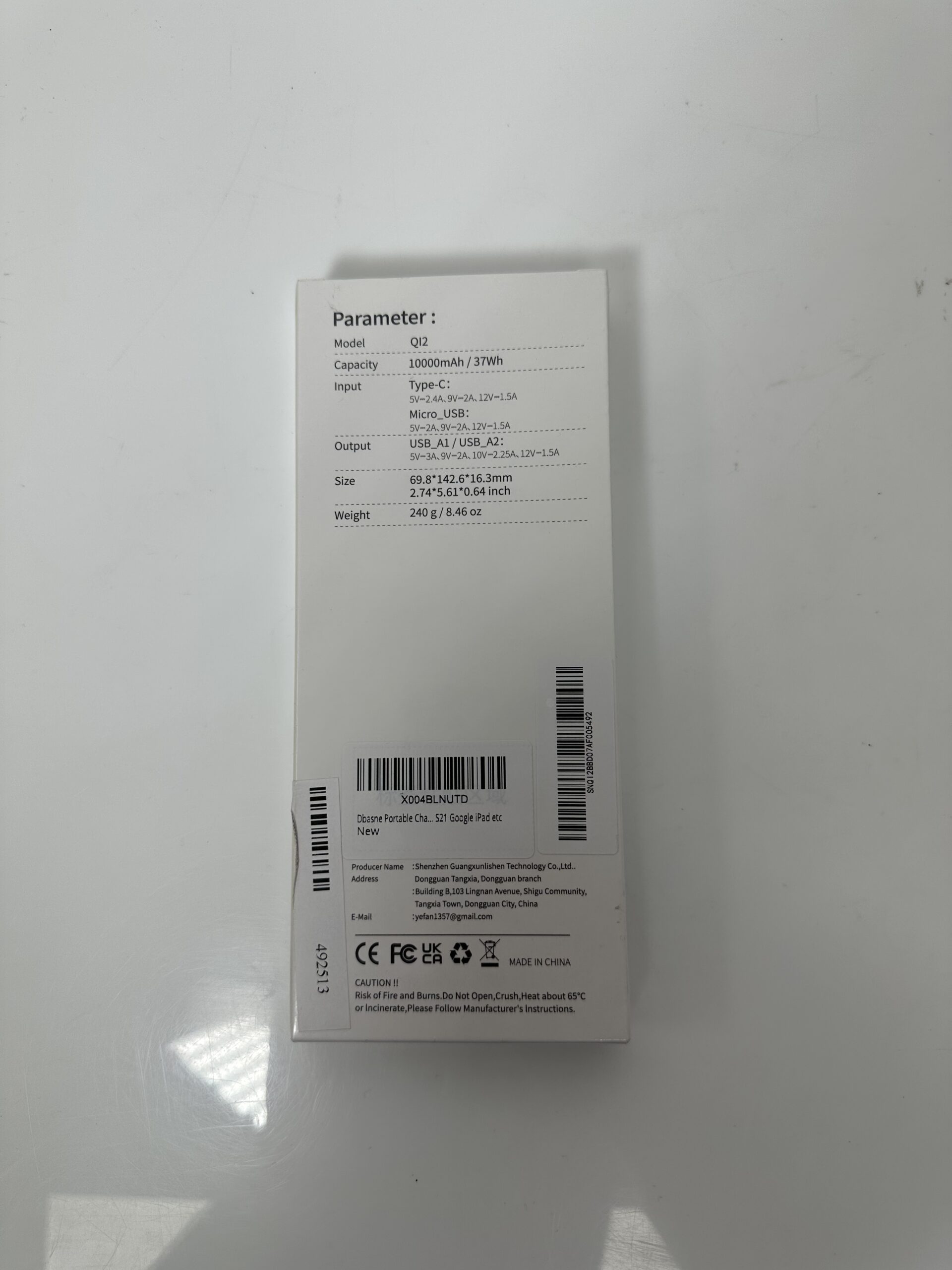 Dbasne – Q12 Power Bank – 10000mAh/37Wh – NOVO (LACRADO!)