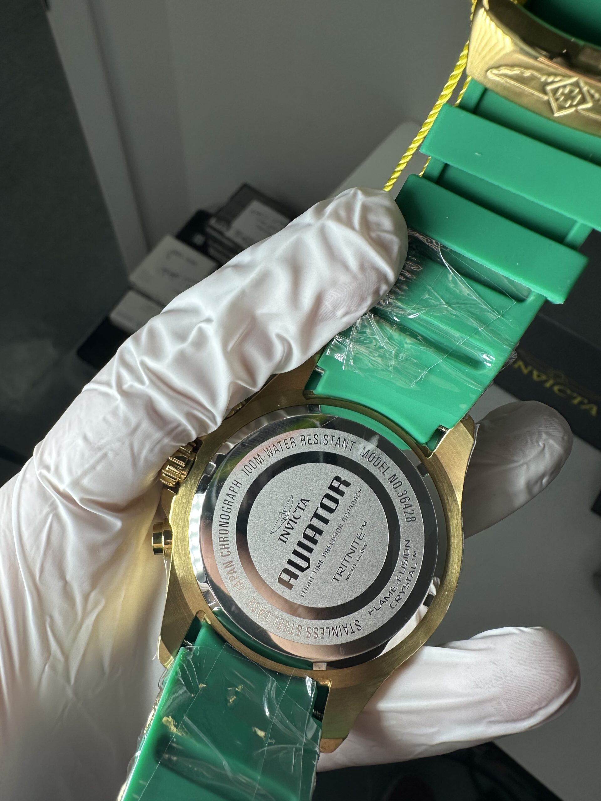 Invicta- Aviator Model: 36428 – Men’s Watch – 54mm, Green and Gold – Produto Novo (na caixa)