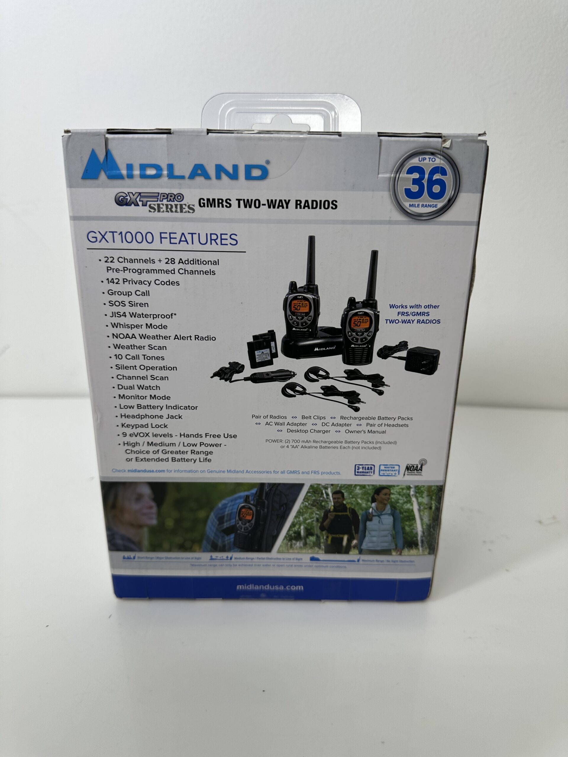 Midland GXT Pro Series – GMRS Two-Way Radios – Pack com 2 walkie-talkies – Novo (lacrado)