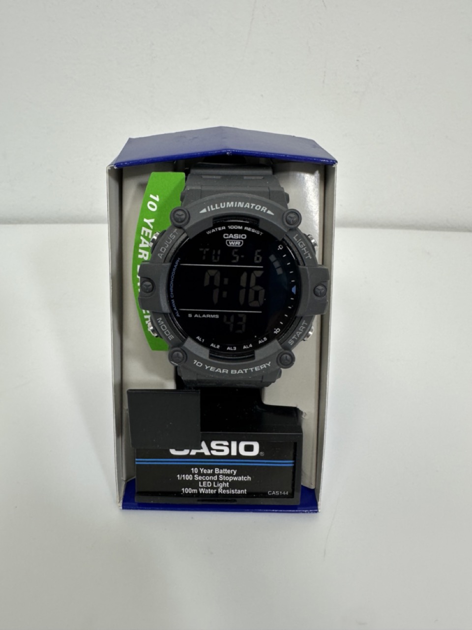 Múltiplas funções: Inclui hora dupla, cronômetro de 1/100 de segundo, temporizador de contagem regressiva e 5 alarmes multifuncionais.